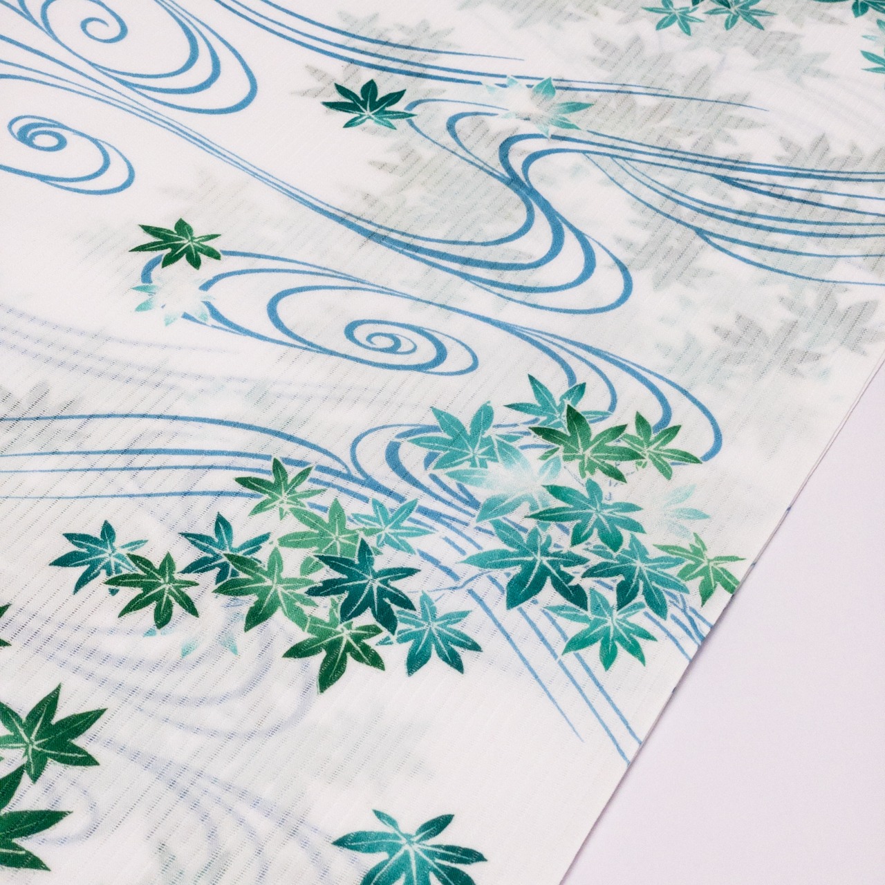 楓の葉と流水が描かれている、涼しげな見た目の浴衣です。